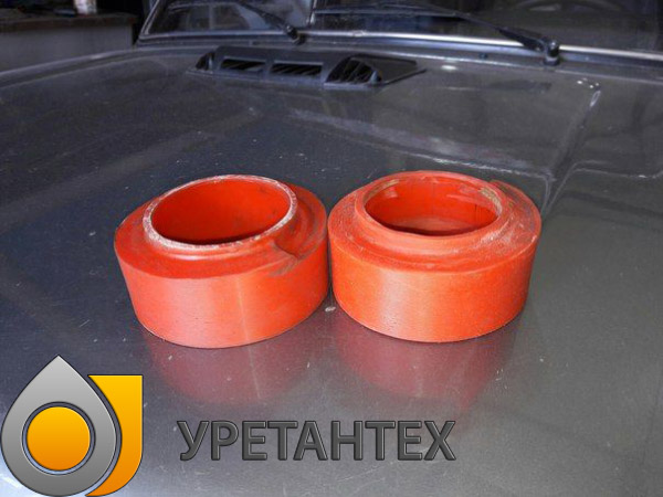 Полиуретан - это мягкое, эластичное сырье. Материал обладает отличной механической памятью, что позволяет активно использовать его в качестве пружинных проставок. Хорошая эластичность позволяет деталям из полиуретана гасить механические удары и стабилизировать пружинный амортизатор.